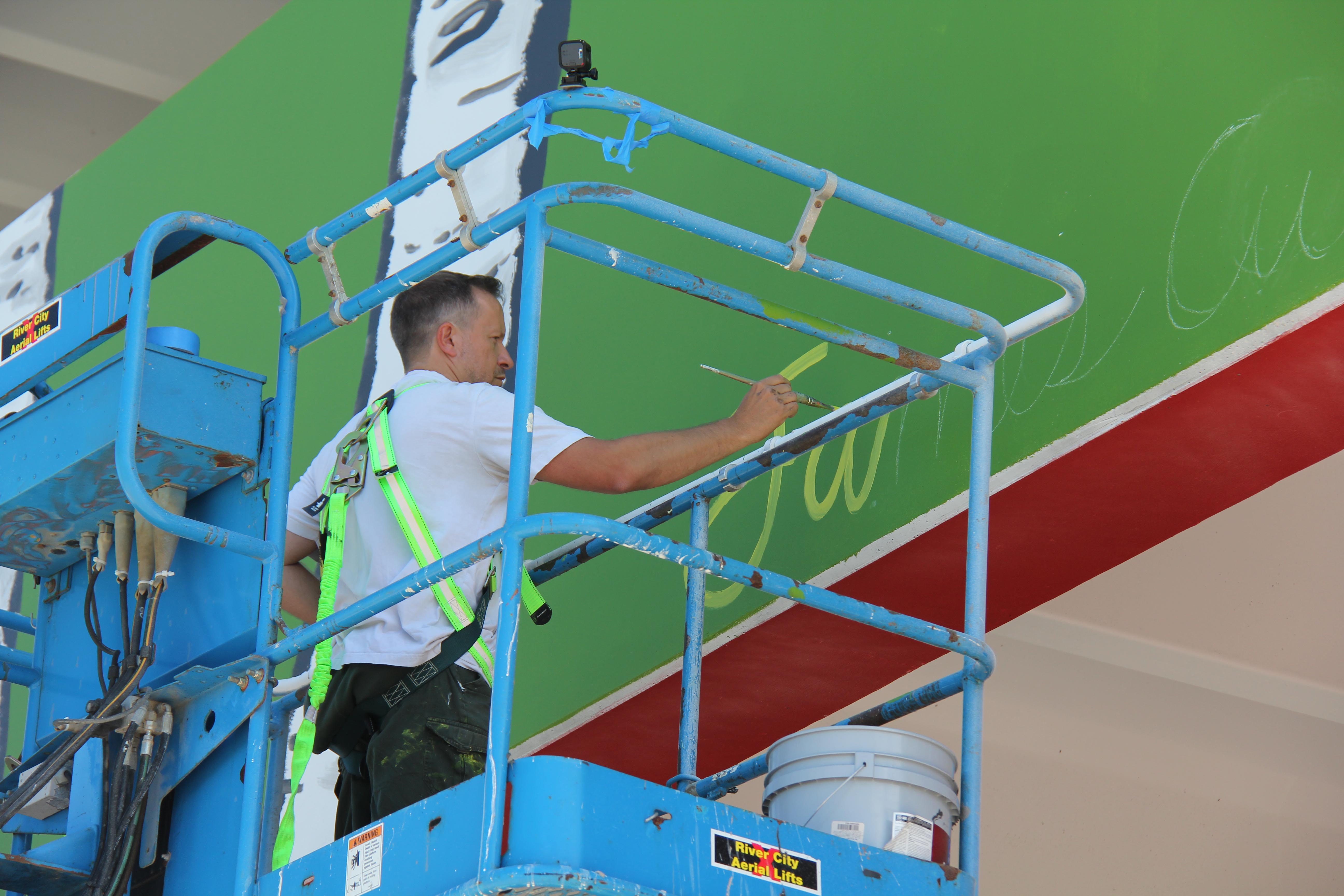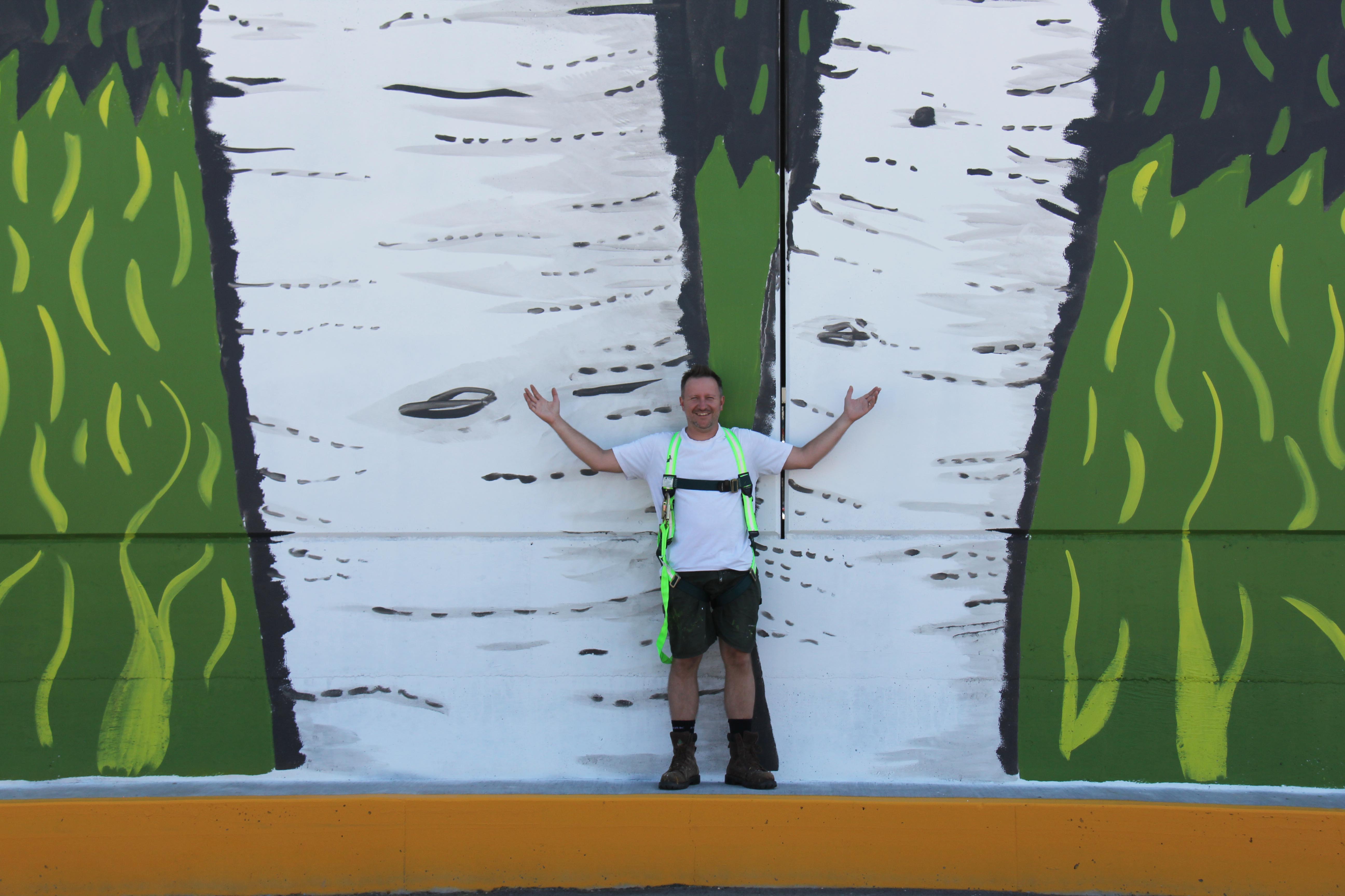 It was an incredibly productive June! I put the final touches on my mural at Club Regent and wow oh wow, what a project it was. Check out the photos and videos below. 60′ x 500′ in size, this is the largest mural I’ve ever done. Special thanks to Michael Koch-Schulte for assisting, Sean Multan of Clean Cut Coatings for the priming, Rental Experts for the lift rental, Sherwin Williams for the paint and Clint Chornawka of Safety Sense for our training. Fantastic!