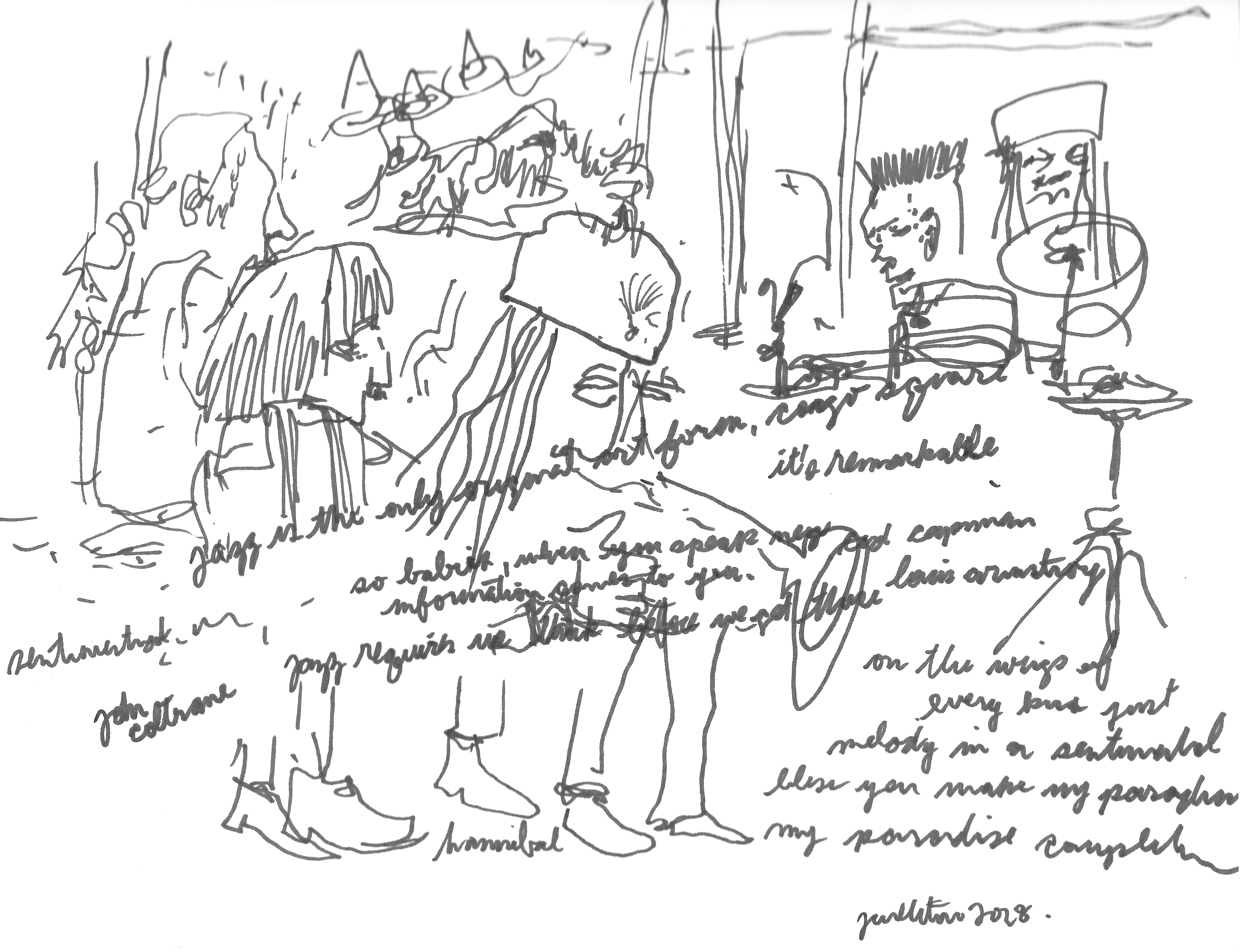Breakfast with Darshan and Stefanieamazing brisket for lunch at La BBQHannibal Lacombe..amazing trumpet player and composer from Smithville, playing in Bastrop.Hannibal LacombeHannibal LacombeEric at the FactoryThe Odd Couple, a play going on in Smithville at their local theatre.First Smithville Lunch with Jill, Clover, Judy, Jim and AntonioSmithville Celebration with the Bucksnort Boogie BoysRosie Flores at C-BoysRosie Flores at C-BoysChicken Fried Steak at Murphys with Clover, Jim and JudyMargaret, Suzie, Shreenie and Aaron at the Tana Bana BoothCampfire at Stefanie Distefano’s Art NIghtNew friends at C-boysNumbers chat with Bryan and ArtBand who I can’t remember at C-BoysLunch with Aaron Sizemore at El Rancho in Winston