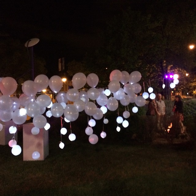 13 Aug 2015 Lights by JamesCulleton | Posted in: Public Art | 0 I’ve been having a lot of fun with lit balloons lately. I’ve done installations at Memorial Park, La Maison des Artistes, and the Forks. I’ll be doing one at the forks again this year for Nuit Blanche on September 26th, 2015
