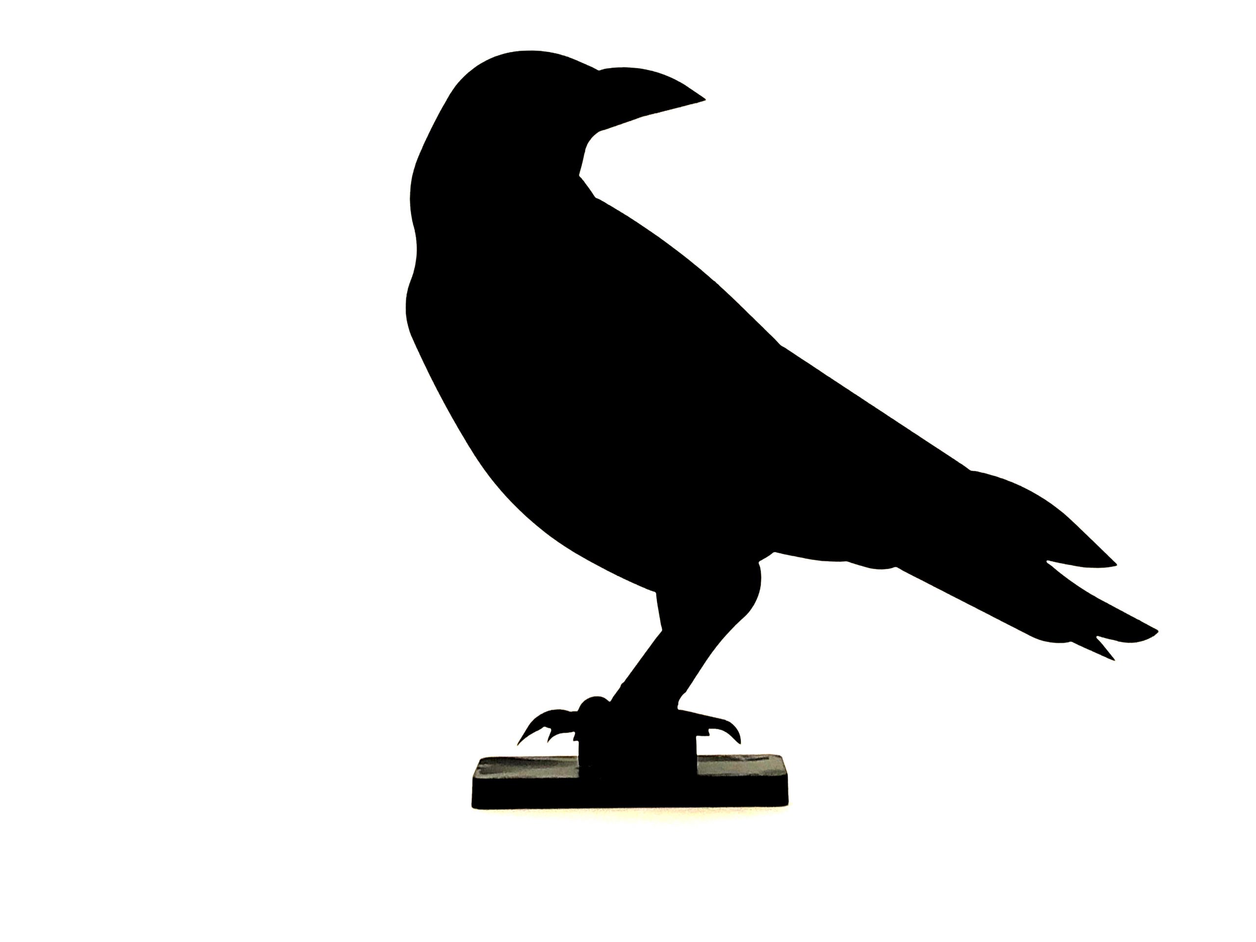 Steel crow cut from 1/4″ steel and powder-coated black. Comes with stand.