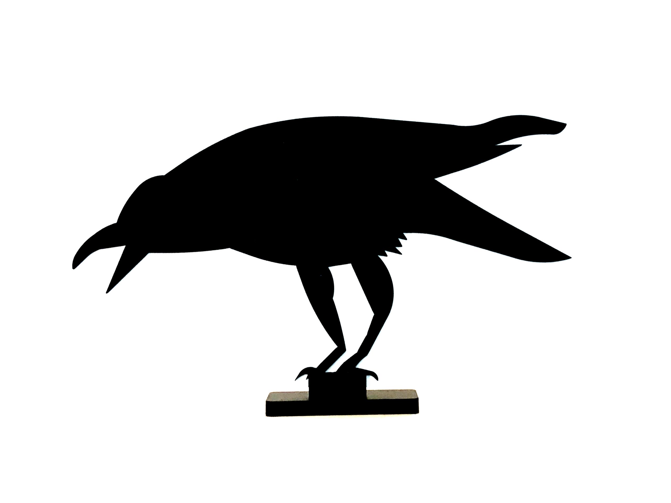 Steel crow cut from 1/4″ steel and powder-coated black. Comes with stand.