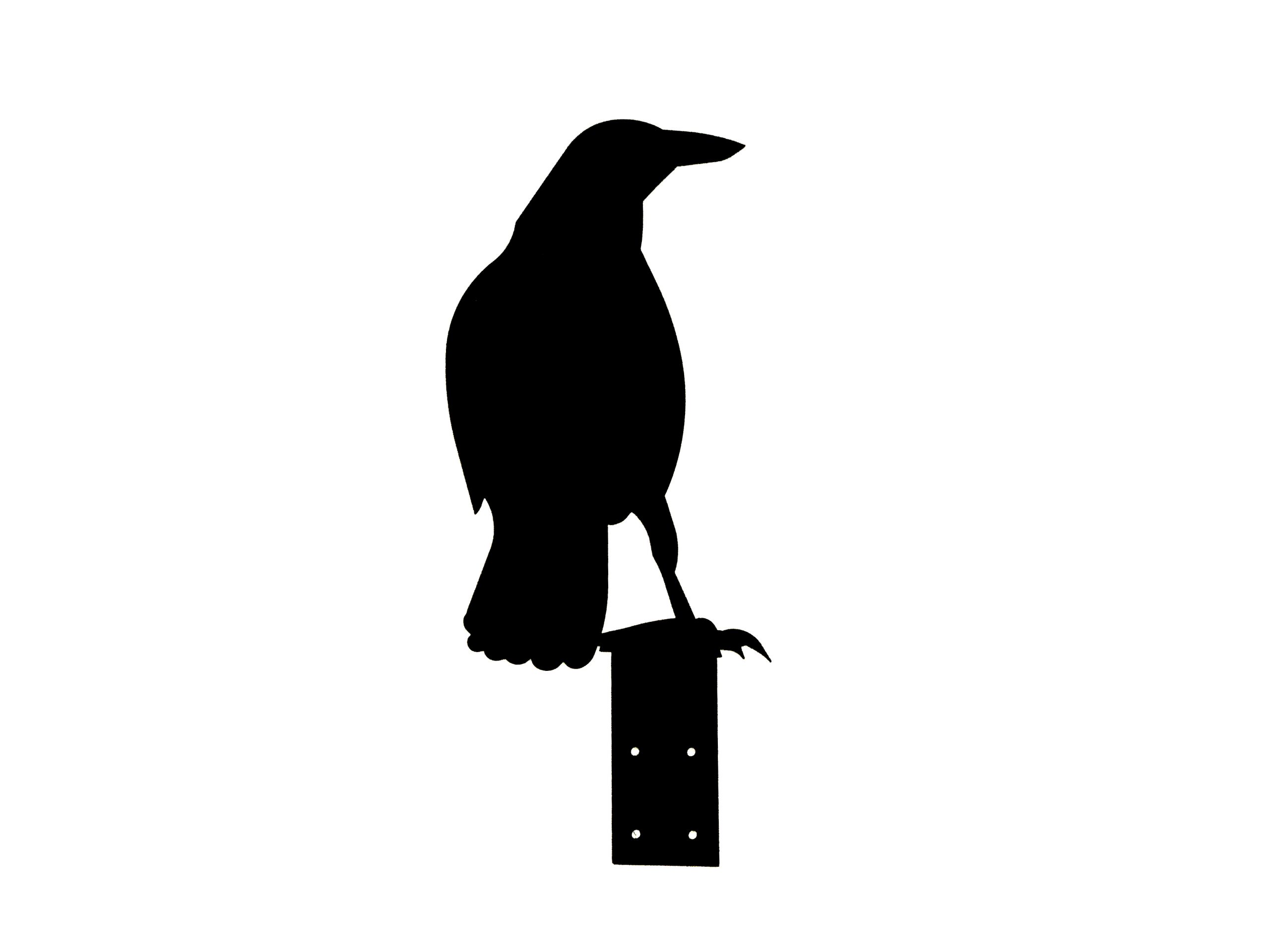 Steel crow cut from 1/4″ steel and powder-coated black. Comes with mounting holes.