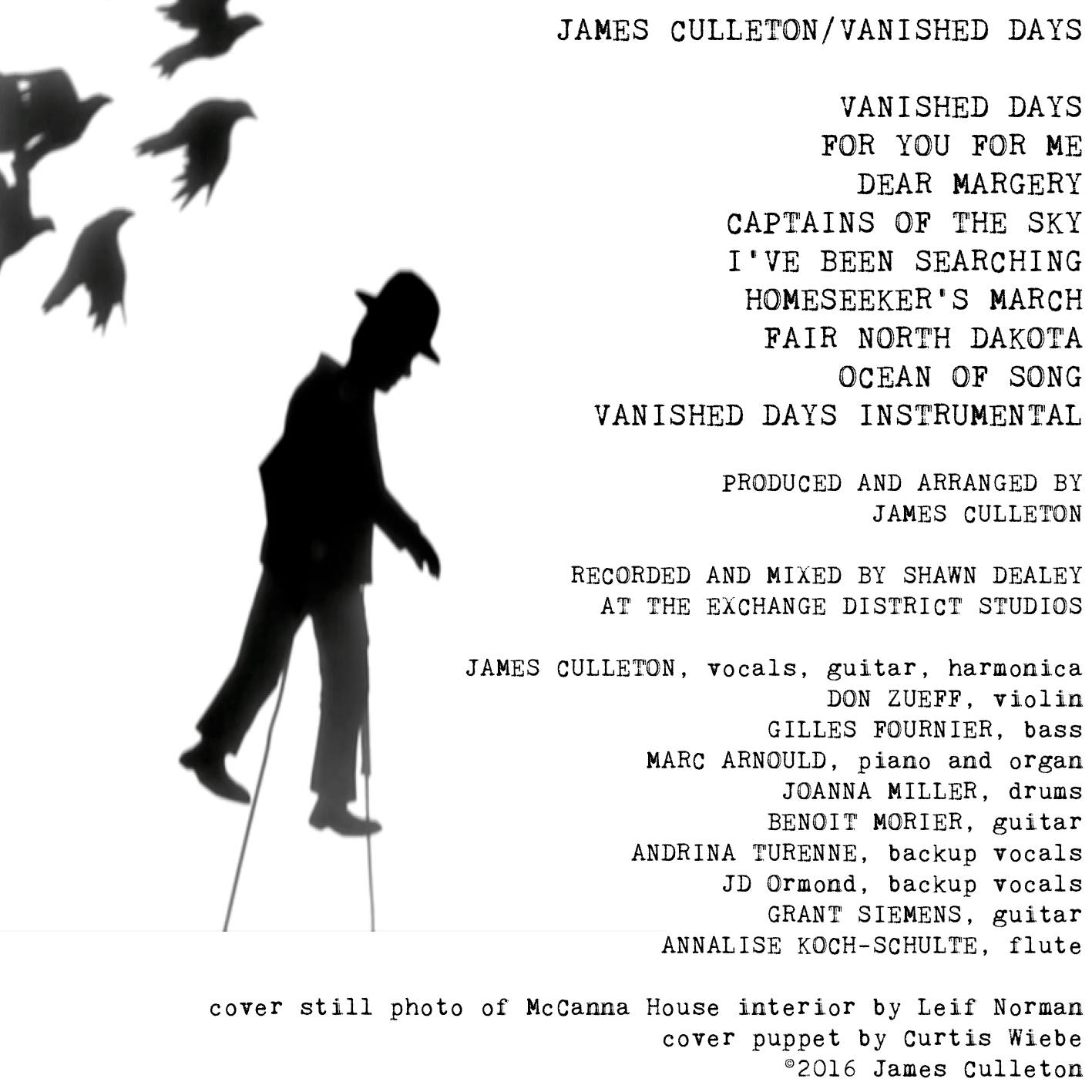 Vanished Days sees James Culleton’s songwriting take a slightly nostalgic turn in that the album is a series of songs focusing on family and farming in North Dakota.