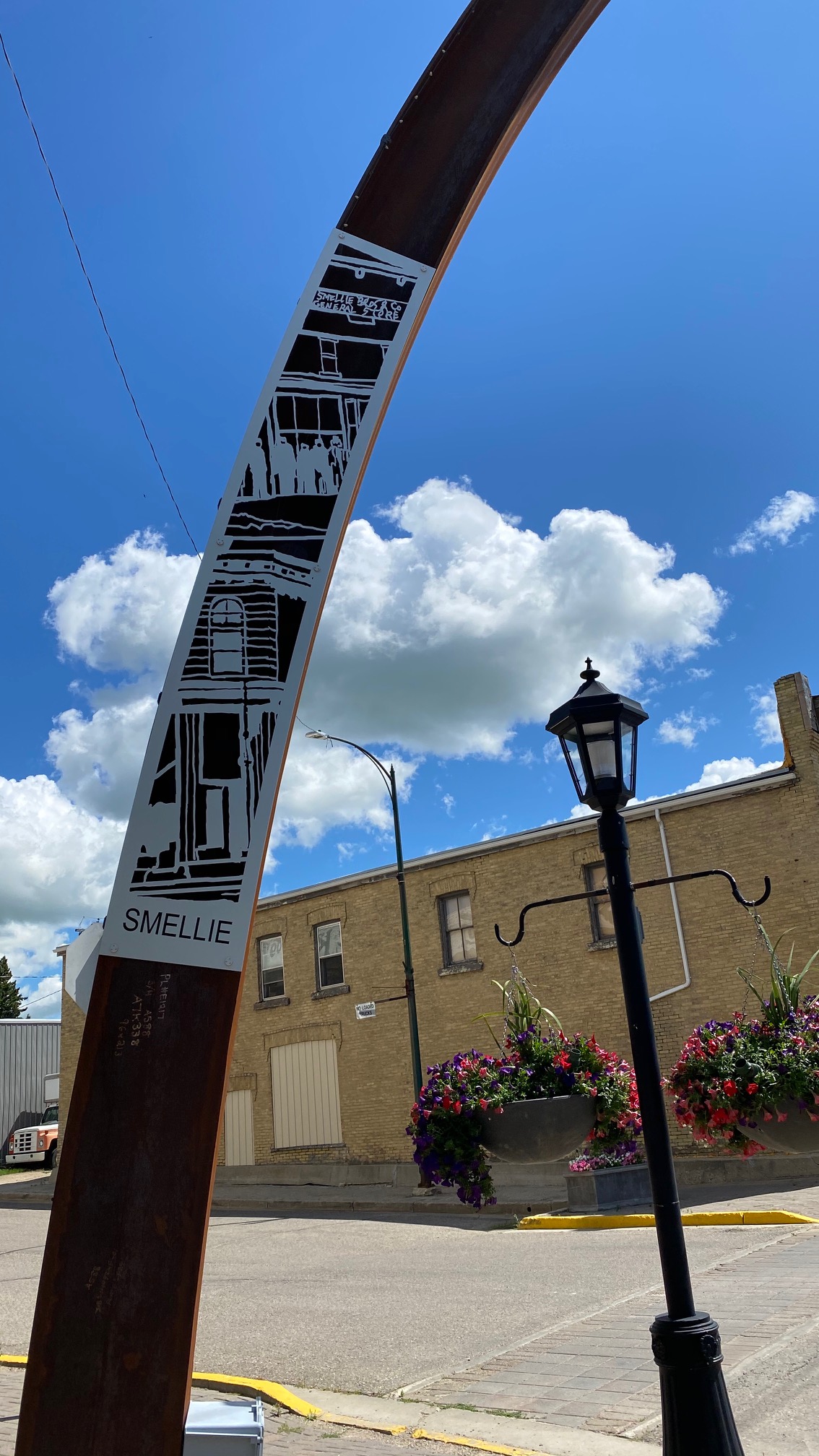In 2018, five of my designs were chosen for a project in the town of Russell, Manitoba. The town partnered with State Industries to fabricate giant metal arches to replace the wood arches of that were once there. They commissioned several artists to create stainless steel panels to adorn each arch based on the history of important people in the town. I love how this project turned out, I track down some images seen here taken by Sash Towfigh. Thanks Sasha!