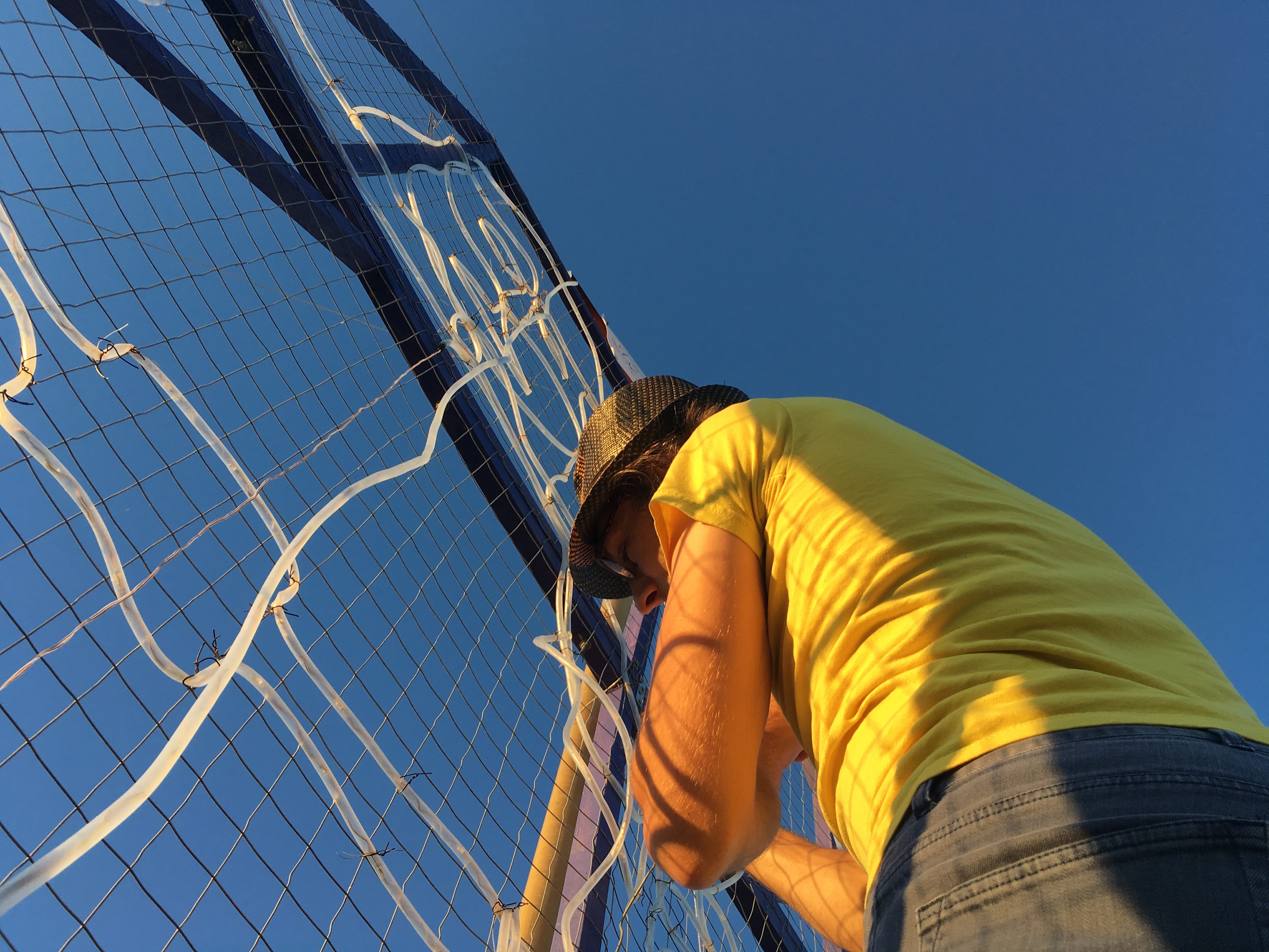 The next step was collecting the plastic bottles that would float the sculpture. Since the lake is such a large canvas to work with, I knew we’d need 10’s of thousands of bottles. We put out a call to the committee and started collecting the bottles at the school.