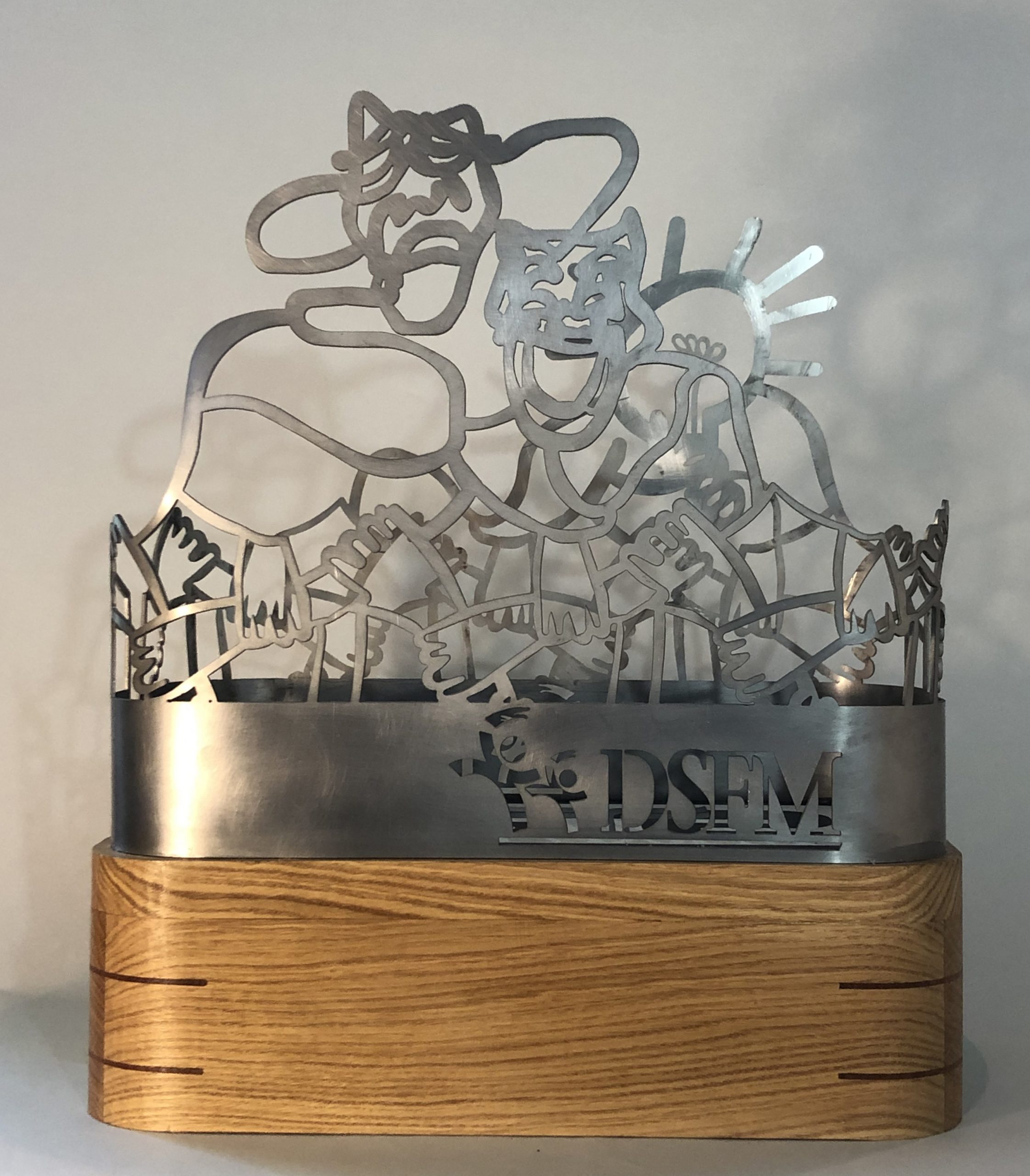 I was asked by the DSFM to create a trophy for La Liste, a long running francophone improv competition in St.Boniface. Here’s what I came up with! Big thanks to Chris Pancoe who fabricated the wood base for me, to Wallin Industries who cut the stainless steel, and to Don from the Sign Source on Marion who printed the logo on the interior. Perfection!