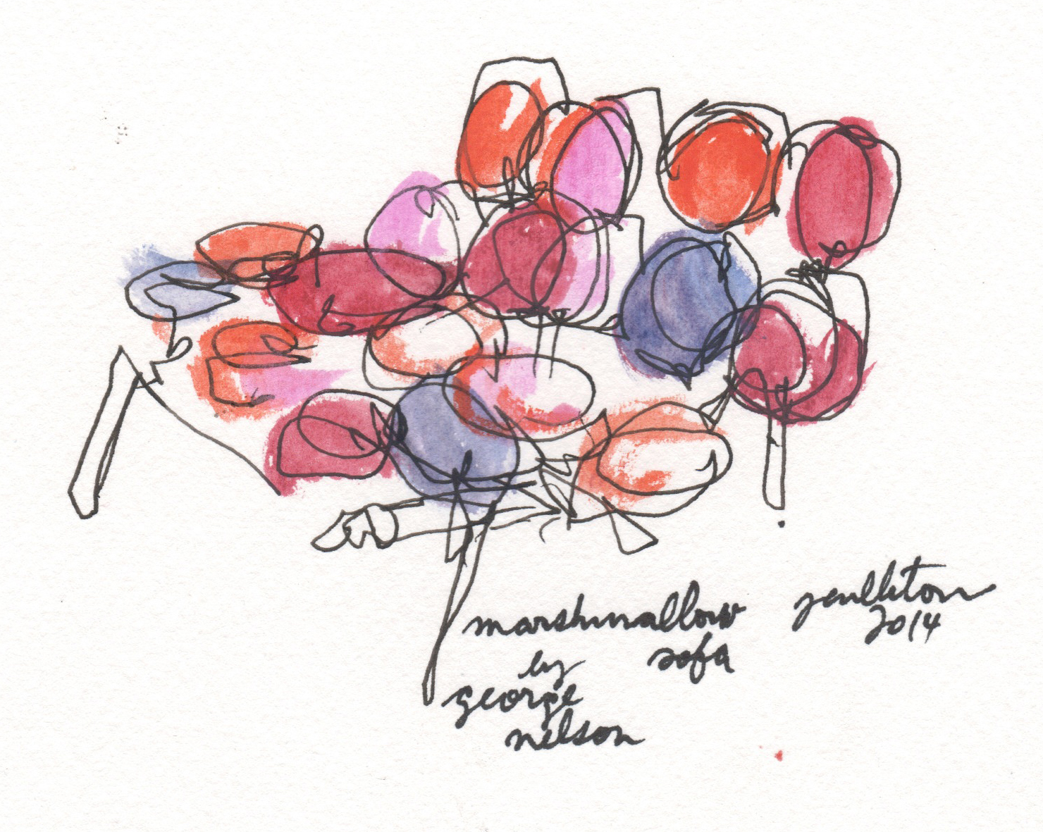 Marshmallow sofa, 5″x5″, $75(unframed) or $100 with frame